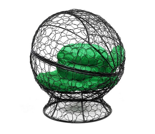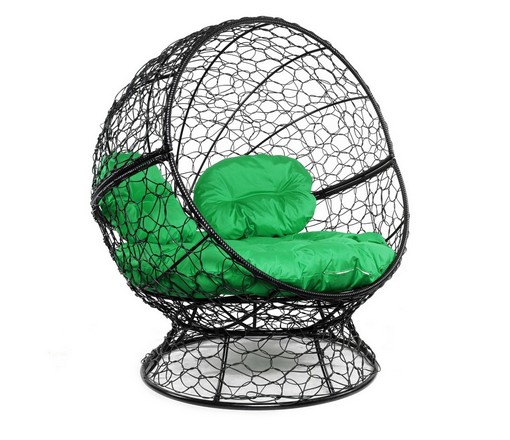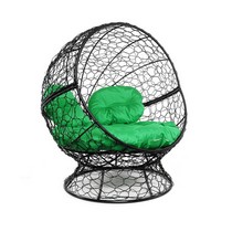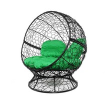 Кресло Апельсин с ротангом (черное, зелёная подушка)