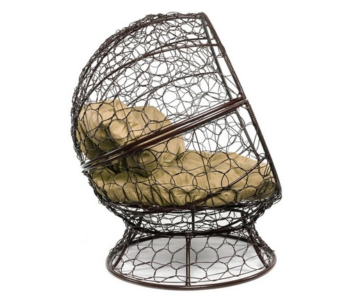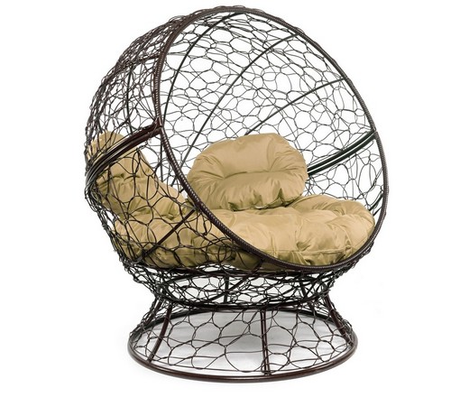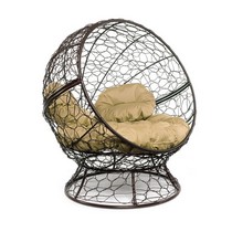 Кресло Апельсин с ротангом (коричневое, бежевая подушка)