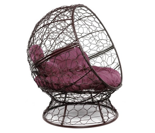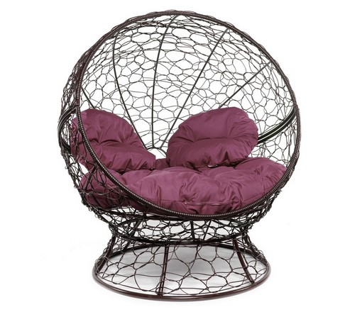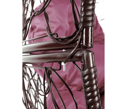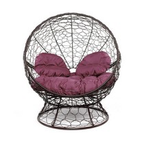 Кресло Апельсин с ротангом (коричневое, бордовая подушка)