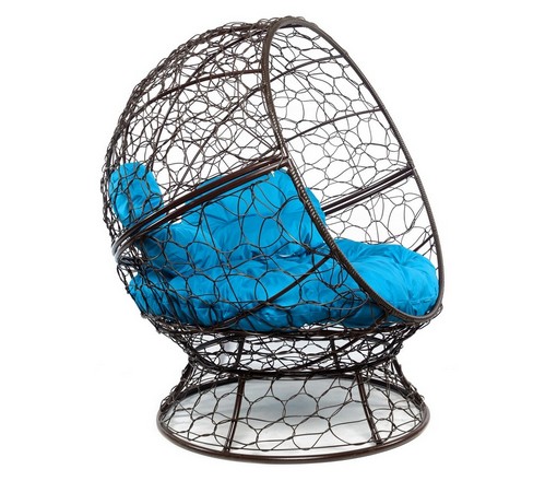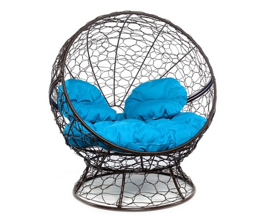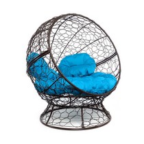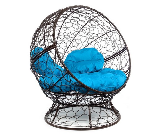 Кресло Апельсин с ротангом (коричневое, голубая подушка)