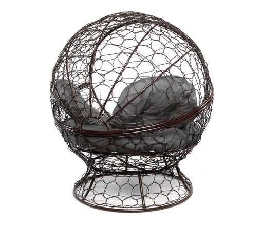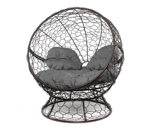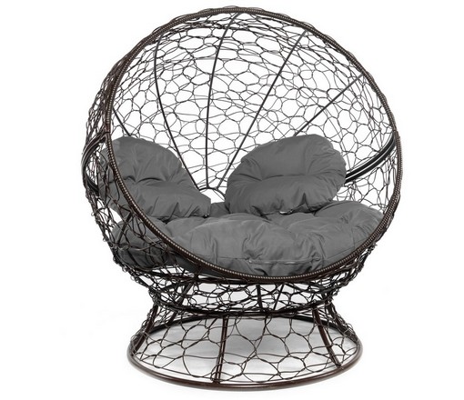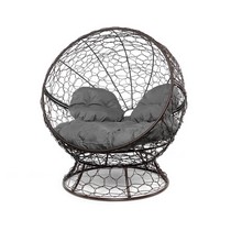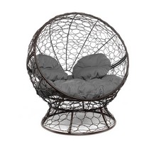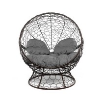 Кресло Апельсин с ротангом (коричневое, серая подушка)