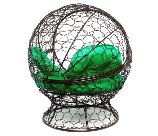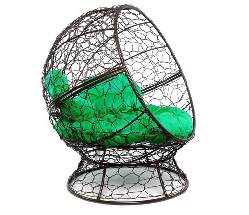 Кресло Апельсин с ротангом (коричневое, зелёная подушка)