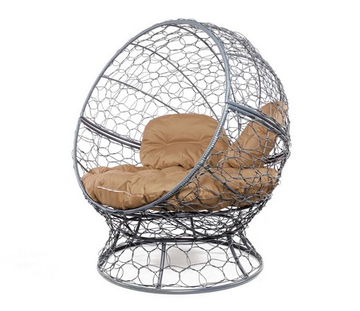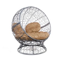 Кресло Апельсин с ротангом (серое, бежевая подушка)