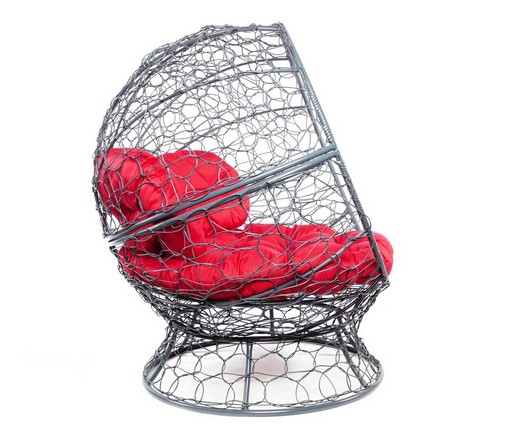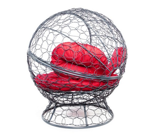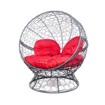 Кресло Апельсин с ротангом (серое, красная подушка)