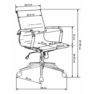 Размеры изделия (ШхГхВ): 55х45х87-95 см, высота до сидения - в нижнем положении 44 см, - в верхнем положении 52 см.