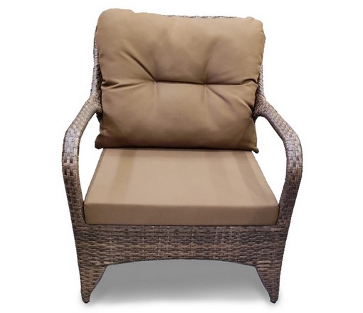 Кресло с подлокотниками и мягкими подушками на сиденье и спинку.