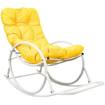 Кресло-качалка белая с желтой подушкой не требует специального ухода.
