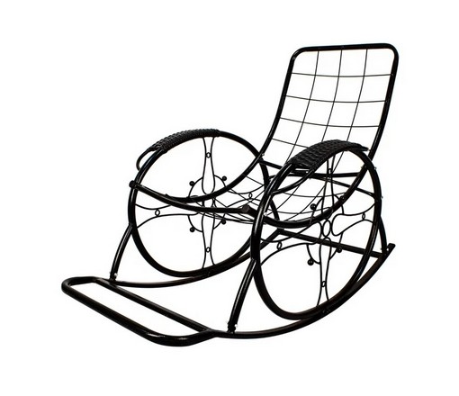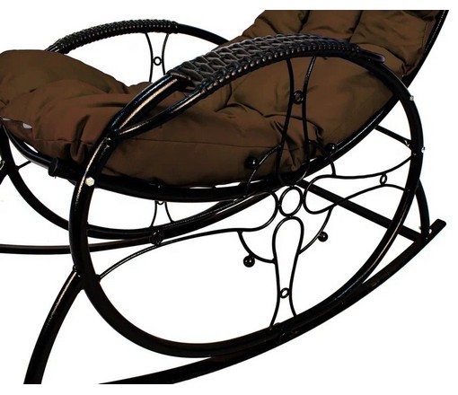 Кресло-качалка Люкс черное, коричневая подушка