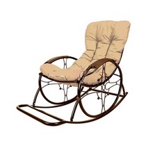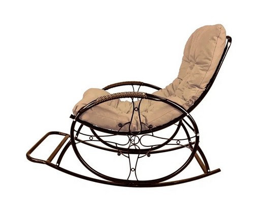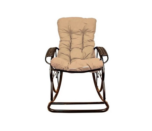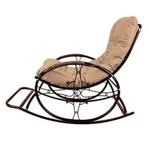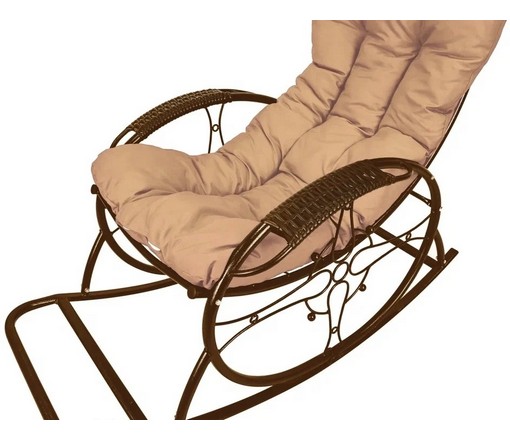 Кресло-качалка Люкс коричневое, бежевая подушка