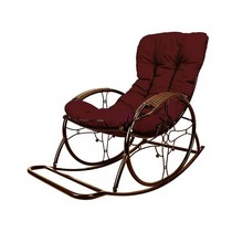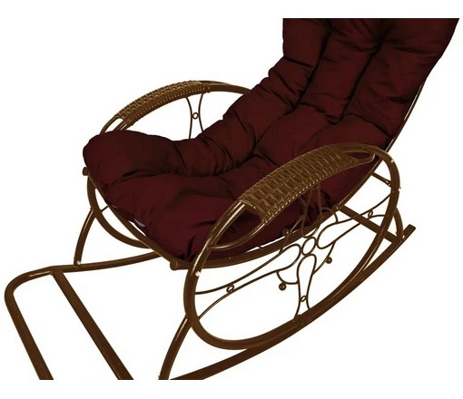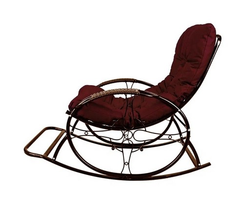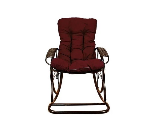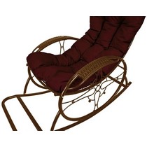 Кресло-качалка Люкс коричневое, бордовая подушка