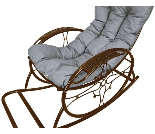 Цвет изделия: каркас - коричневый, плетение подлокотников - коричневое, подушка - серая.