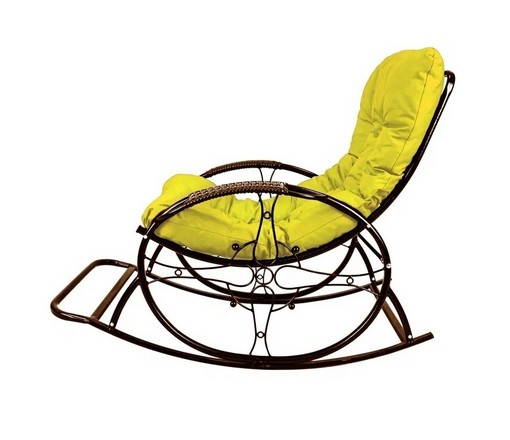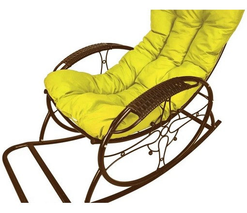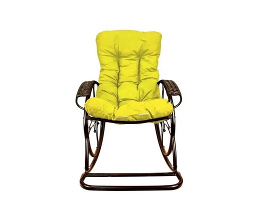 Цвет изделия: каркас - коричневый, плетение подлокотников - коричневое, подушка - желтая.