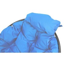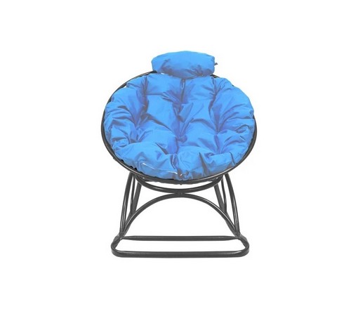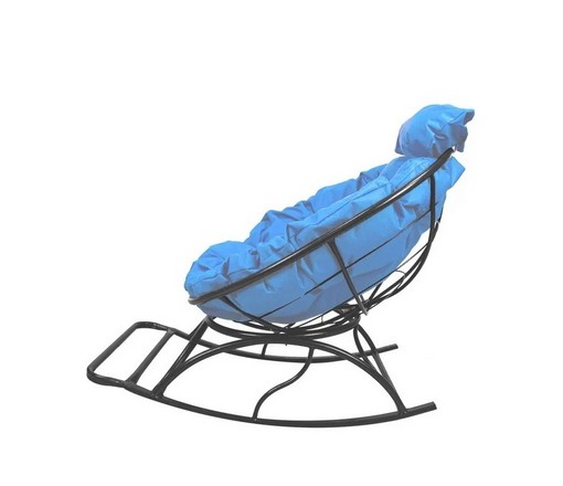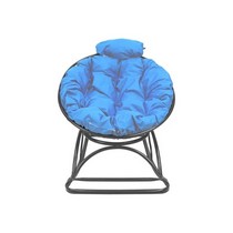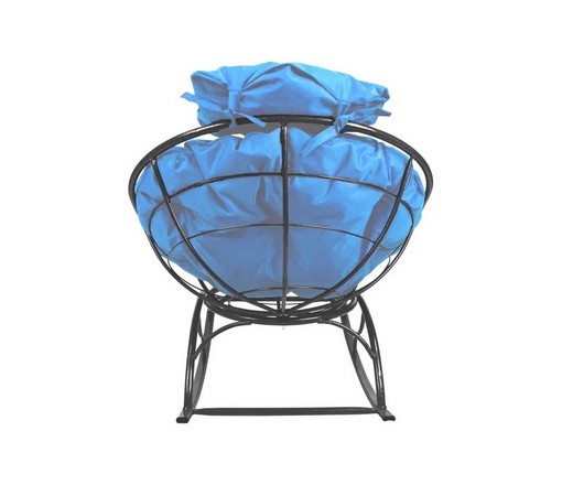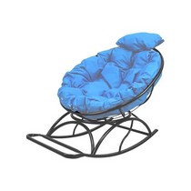 Кресло-качалка Папасан Мини металл серое с голубой подушкой может использоваться как в помещении, так и на улице.