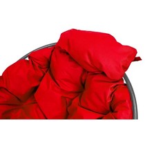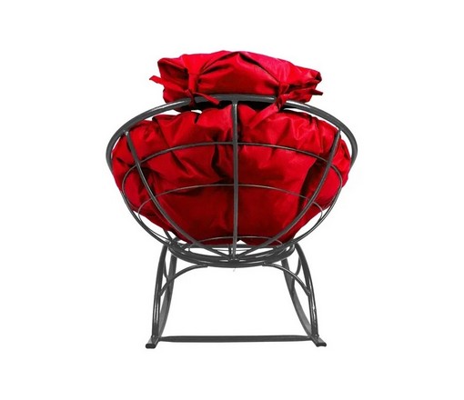 Кресло-качалка Папасан Мини металл серое с красной подушкой может использоваться как в помещении, так и на улице.