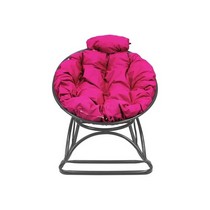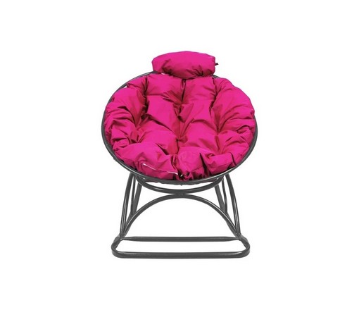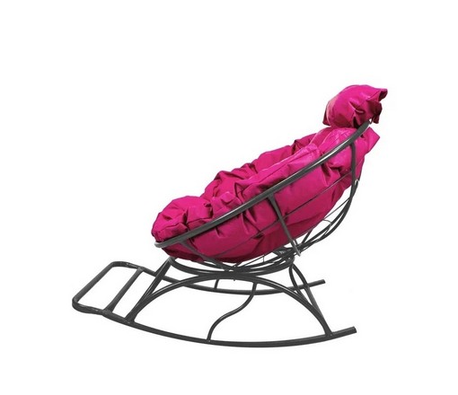 Кресло-качалка Папасан Мини металл серое с розовой подушкой может использоваться как в помещении, так и на улице.