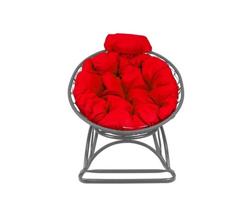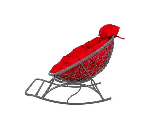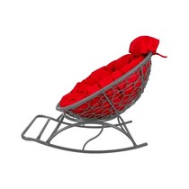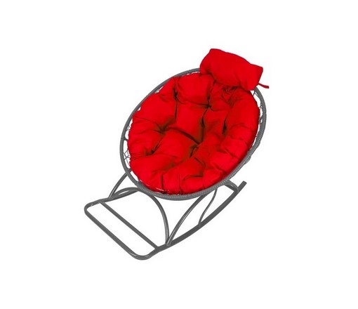 Кресло-качалка Папасан Мини ротанг (серое с красной подушкой)