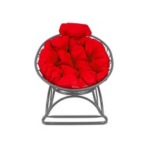 Кресло-качалка Папасан Мини ротанг серое с красной подушкой может использоваться как в помещении, так и на улице.