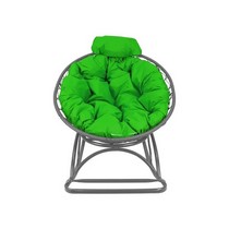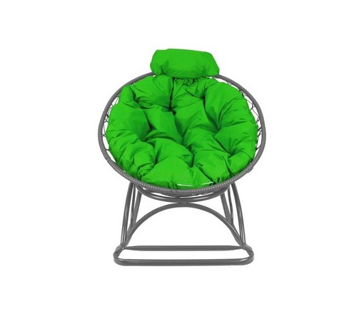 Кресло-качалка Папасан Мини ротанг серое с зеленой подушкой может использоваться как в помещении, так и на улице.