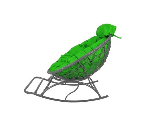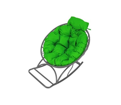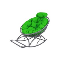 Кресло-качалка Папасан Мини ротанг (серое с зеленой подушкой)