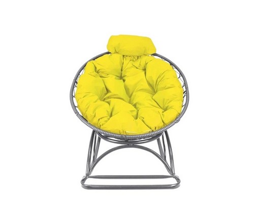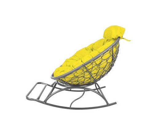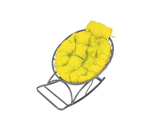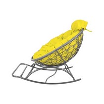 Кресло-качалка Папасан Мини ротанг (серое с желтой подушкой)