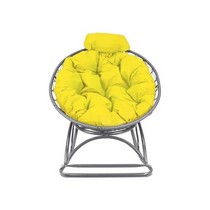 Кресло-качалка Папасан Мини ротанг серое с желтой подушкой может использоваться как в помещении, так и на улице.