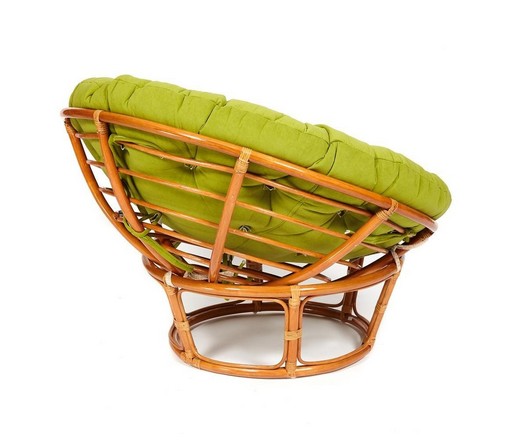 Кресло Papasan 23/01W, цвет: cognac (коньяк) с зеленой подушкой