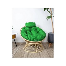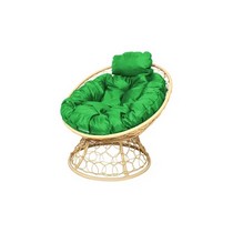 Кресло Папасан Мини с ротангом (бежевое с зеленой подушкой)