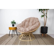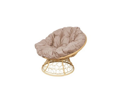 Кресло Папасан с ротангом (бежевое с бежевой подушкой)