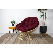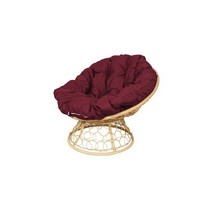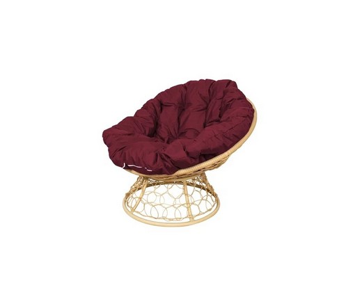 Кресло Папасан с ротангом (бежевое с бордовой подушкой)
