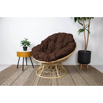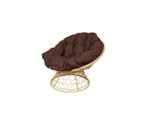Кресло Папасан с ротангом (бежевое с коричневой подушкой)