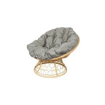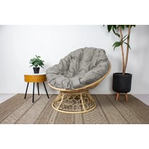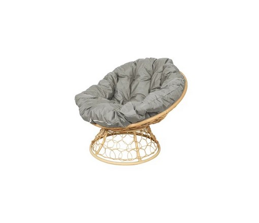 Кресло Папасан с ротангом (бежевое с серой подушкой)