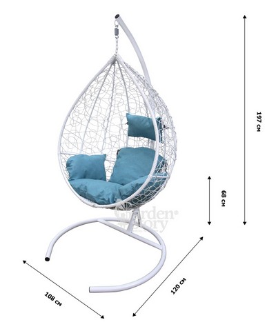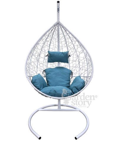 Кресло подвесное Сфера (белый, корзнина белая, подушка бирюзовая)