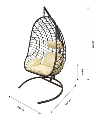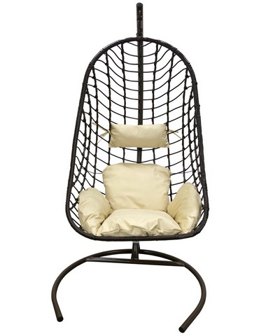 Кресло подвесное Тренто ротанг (коричневое, подушка бежевая)