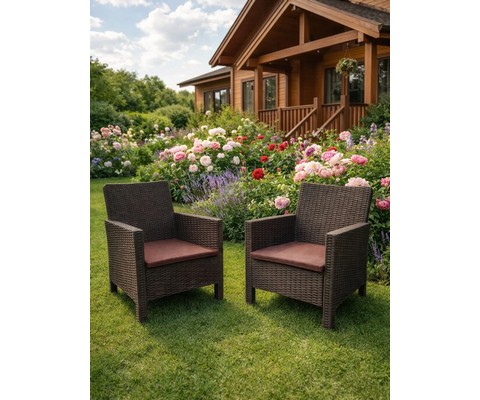 Кресло садовое под ротанг СадКо (темно-коричневый с коричневой подушкой)