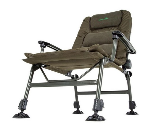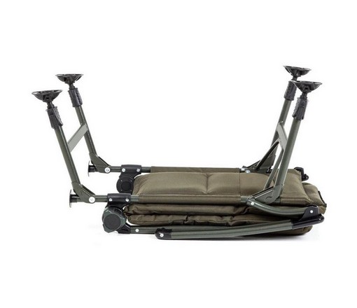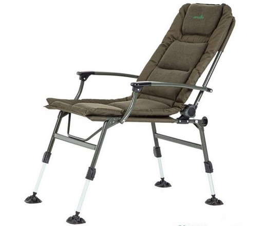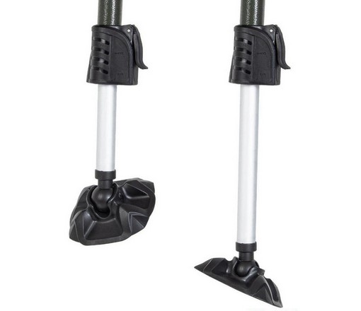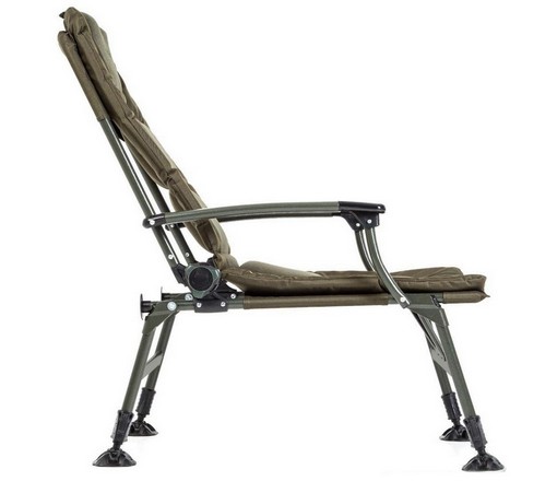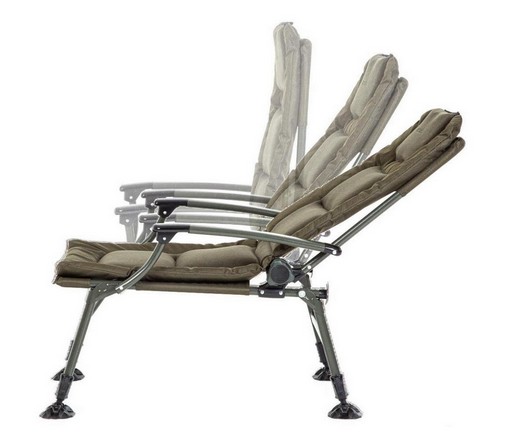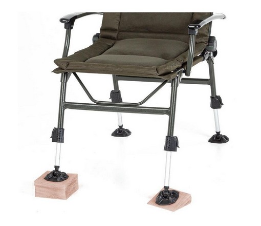 Возможна установка кресла даже на неровном рельефе благодаря регулируемой высоте выдвижных ножек и поворотным ступням.