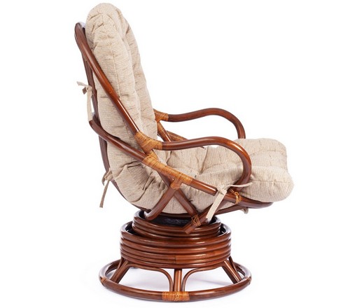 Кресло вращающееся FLORES 5005, с подушкой (Pecan орех, ткань хлопок, цвет натуральный)