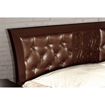 Изголовье декорировано мягкими вставками с обивкой из гипоаллергенной экокожи.