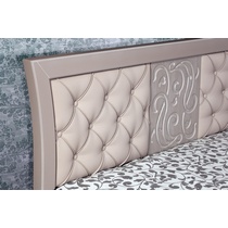 Изголовье декорировано мягкими вставками с обивкой из гипоаллергенной экокожи.