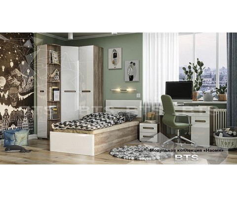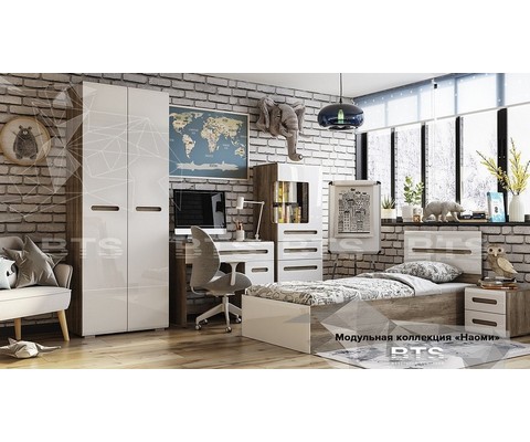 Кровать 90х200 Наоми КР-12 (дуб каньон/белый глянец)