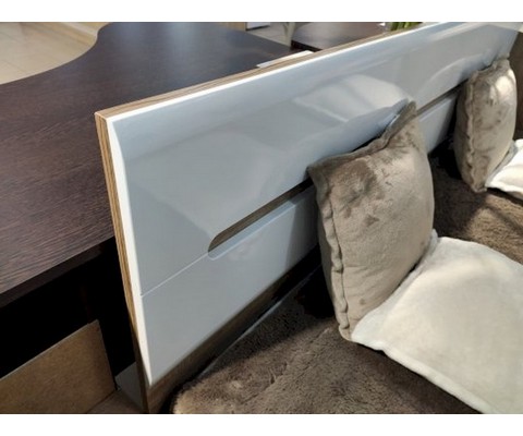 Изголовье и ножной щиток кровати выполнены из МДФ со скругленной фрезеровкой.