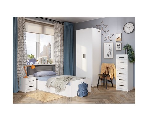 Односпальная кровать Фьюжн КР-03 подойдет как для подростковой комнаты, так и для спальни. Мягкая деталь на изголовье обтянута износостойкой мебельной тканью приятного серого цвета.