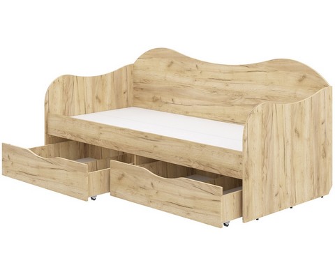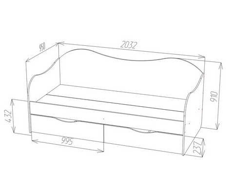 Кровать имеет прочную и стабильную конструкцию с двумя фигурными бортами и спинкой, выполнена из высококачественных материалов с усилением жёсткости, обеспечивая долгий срок службы, исключая вероятность расшатывания, скрипа.