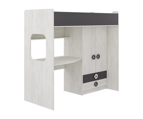 Кровать чердак Адель с лестницей (Светлое дерево/Антрацит) двухъярусная односпальная