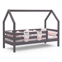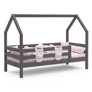 Кровать с защитным бортиком и надстройкой в виде домика.