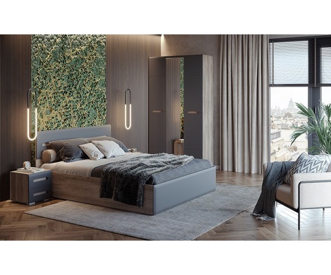 Кровать двуспальная 160х200 Наоми КР-11 с подъемным механизмом (дуб каньон/графит нубук)