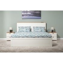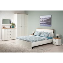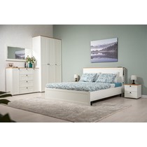 Двуспальная кровать Остин 11.53 выполнена в белом цвете в сочетании с теплым древесным декором.