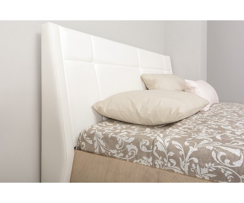 Мягкое изголовье кровати имеет наклон, что дает возможность не только лежать, но и комфортно сидеть, как на диване.