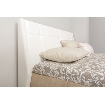 Двуспальная кровать Муссон 11.28 Н выполнена в сочетании белого с теплым древесным оттенком дуба эндгрейн.