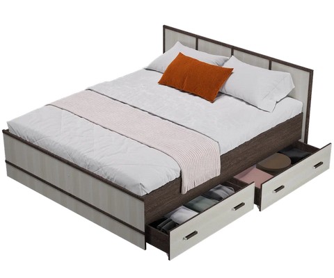 Кровать оснащена 2 вместительными ящиками для хранения.