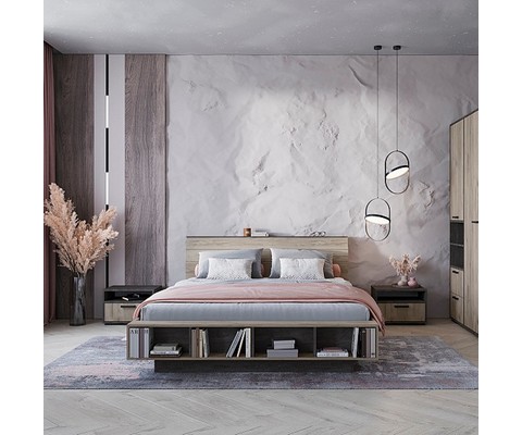 Кровать КР-02 Эдинбург (дуб крафт серый/железный камень)